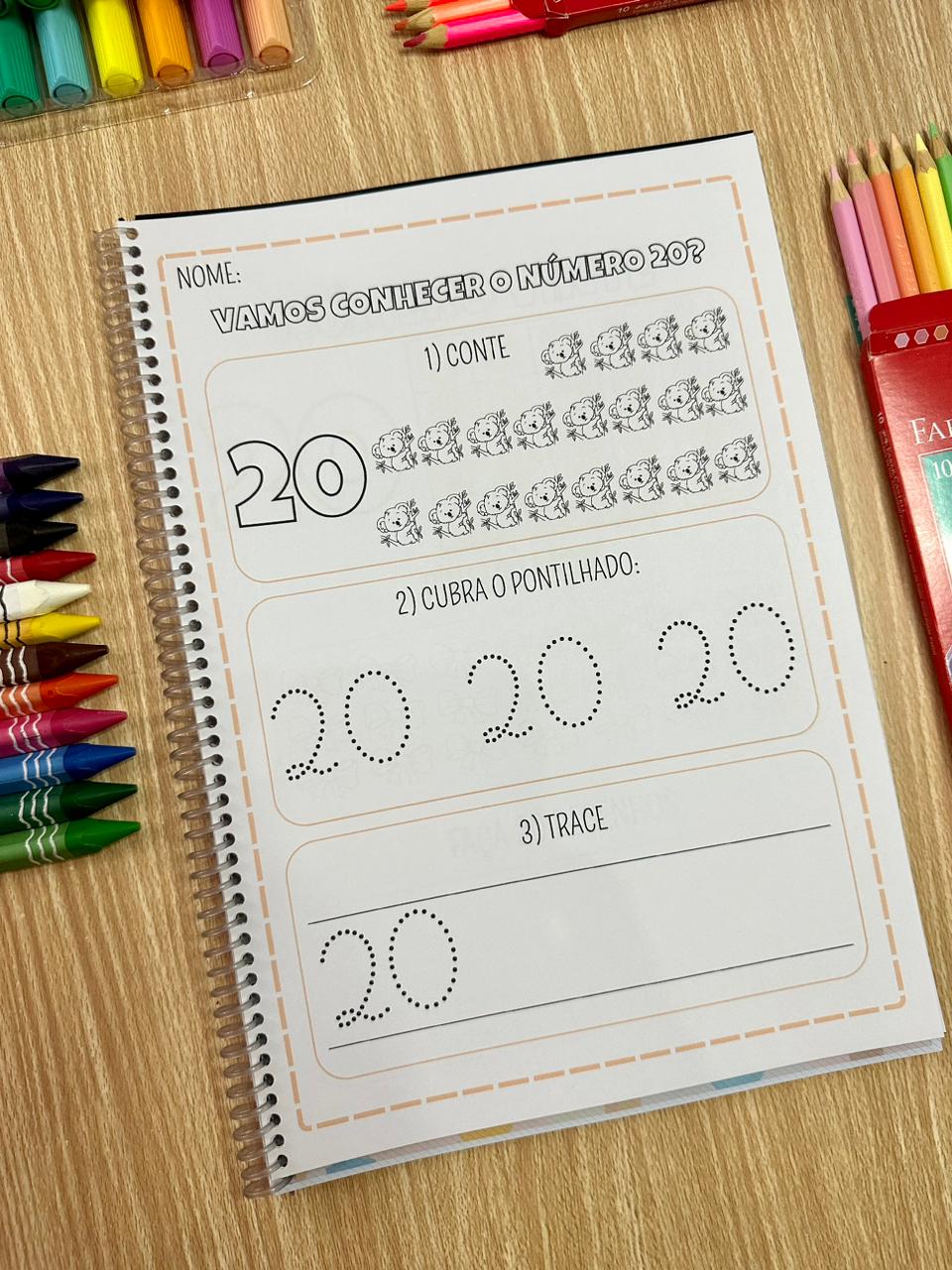 🔢A apostila inclui 40 páginas de atividades, dos numerais de 1 a 20, ideais para crianças de 4 a 6 anos de idade.