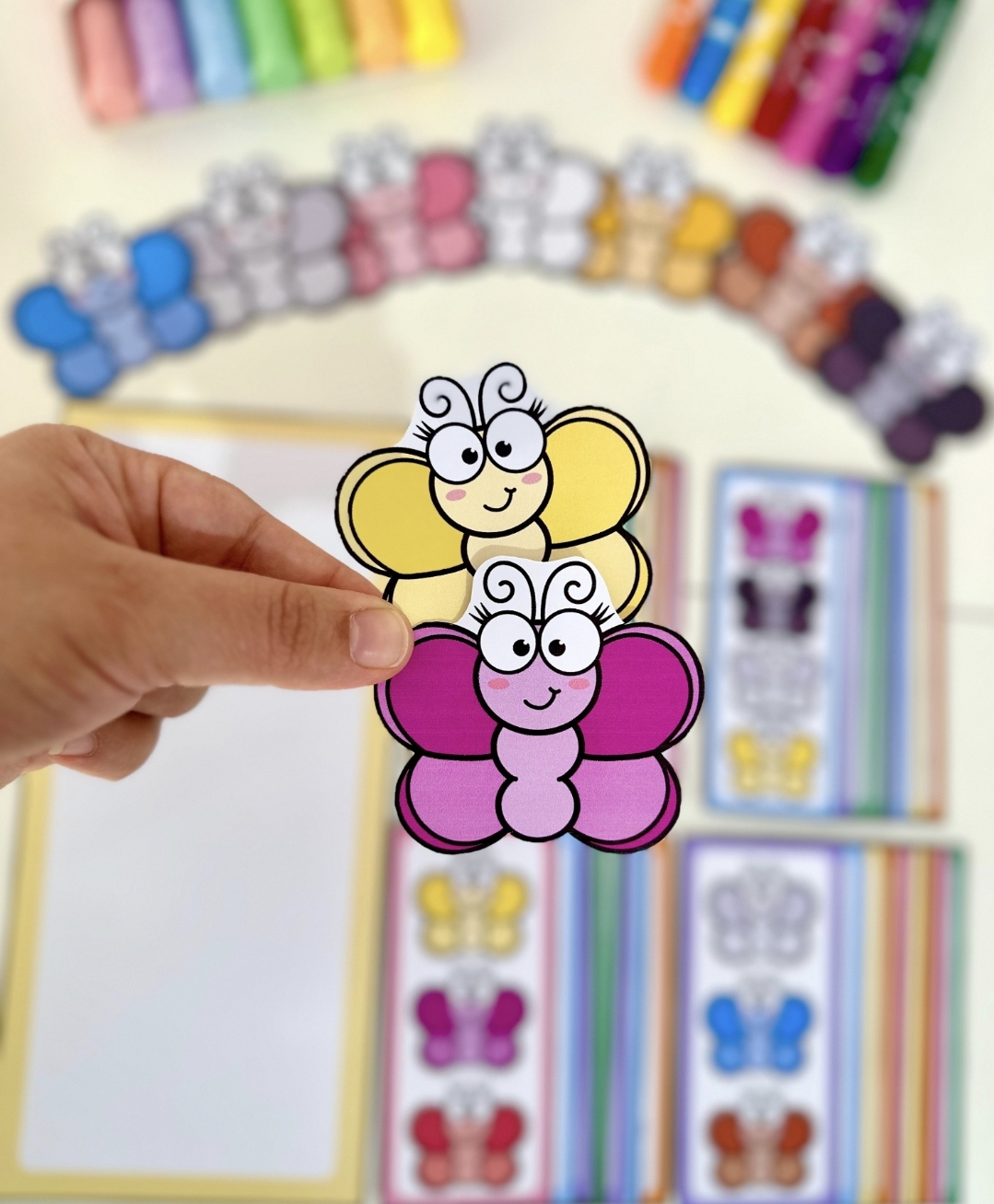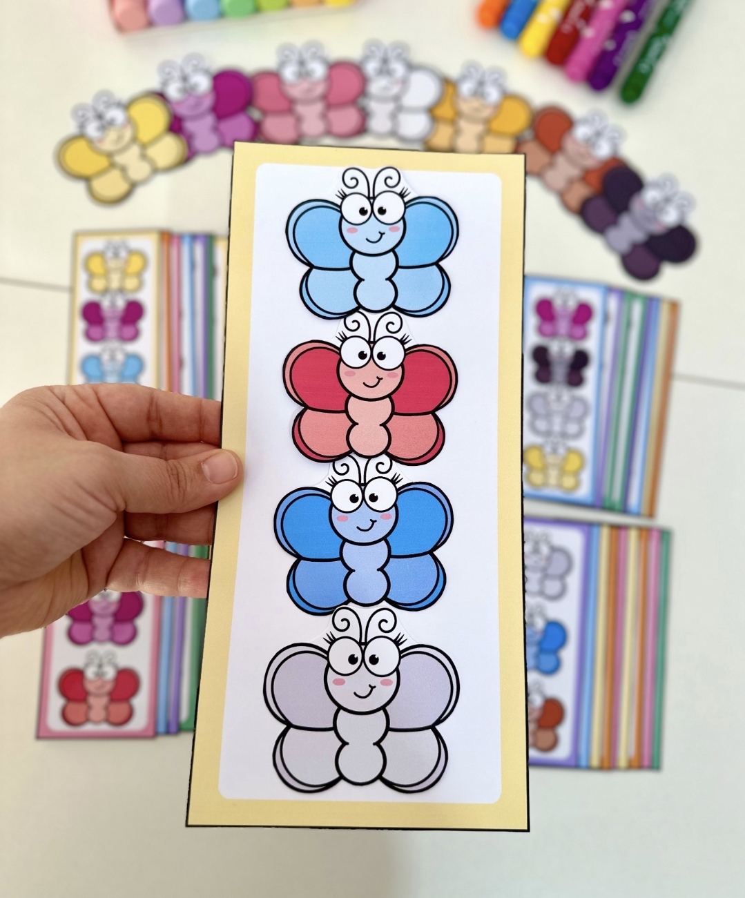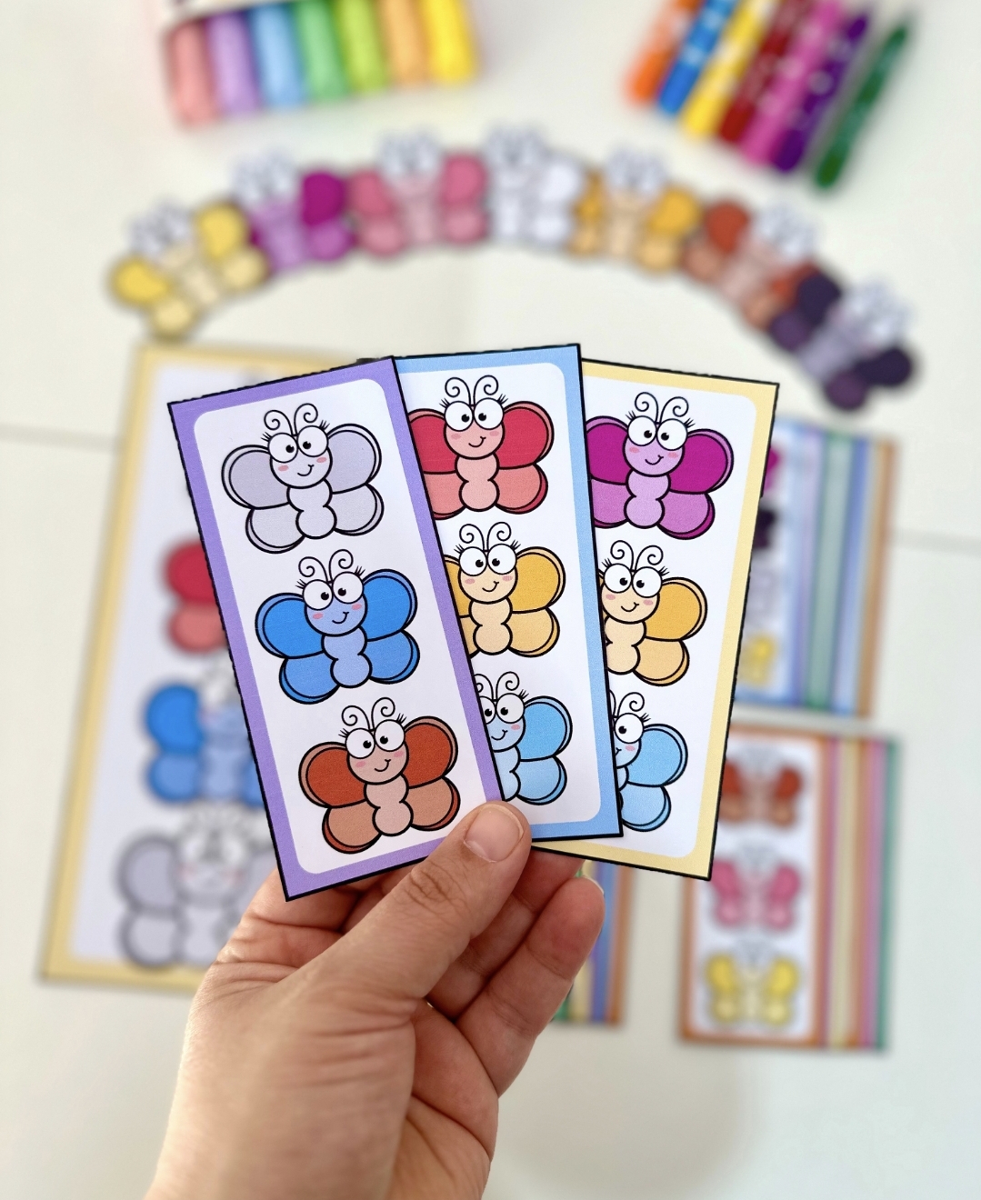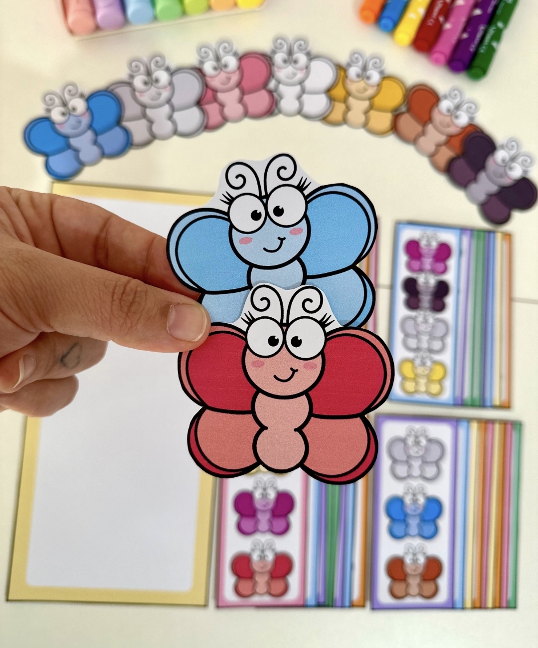 O material vai em PDF pronto para impressão, e inclui 9 paginas com varias fichas. Este material utiliza borboletas coloridas para tornar o aprendizado mais acessível e envolvente, estimulando a percepção visual e a associação entre cores de maneira lúdica e adaptada às necessidades individuais de cada aluno.