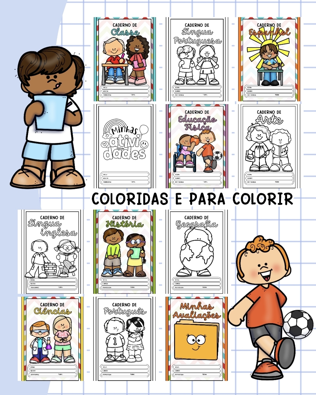 Descrição: As capinhas de cadernos foram criadas para deixar a rotina escolar mais prática, organizada e visualmente encantadora. Com versões coloridas e para colorir, elas facilitam a identificação dos cadernos e ainda incentivam o cuidado e a autonomia dos alunos.