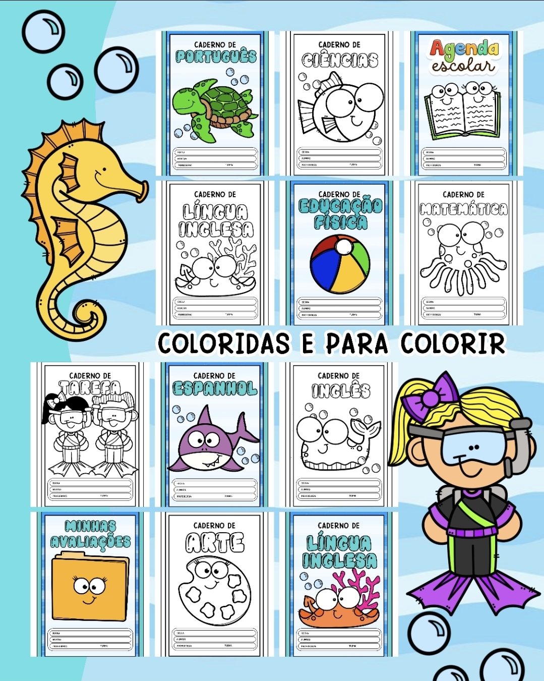 Descrição: As capinhas de cadernos foram criadas para deixar a rotina escolar mais prática, organizada e visualmente encantadora. Com versões coloridas e para colorir, elas facilitam a identificação dos cadernos e ainda incentivam o cuidado e a autonomia dos alunos.