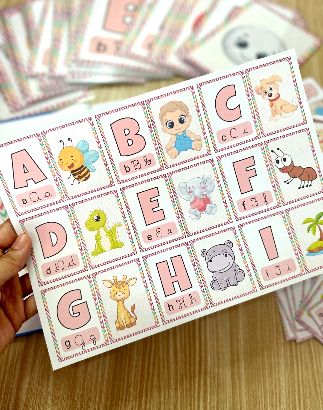 O arquivo Cards do Alfabeto para Pareamento inclui 26 cards de imagens e 26 cards com as letras do Alfabeto, apresentadas em 4 formatos para facilitar a assimilação e familiaridade da criança com nosso sistema de escrita.