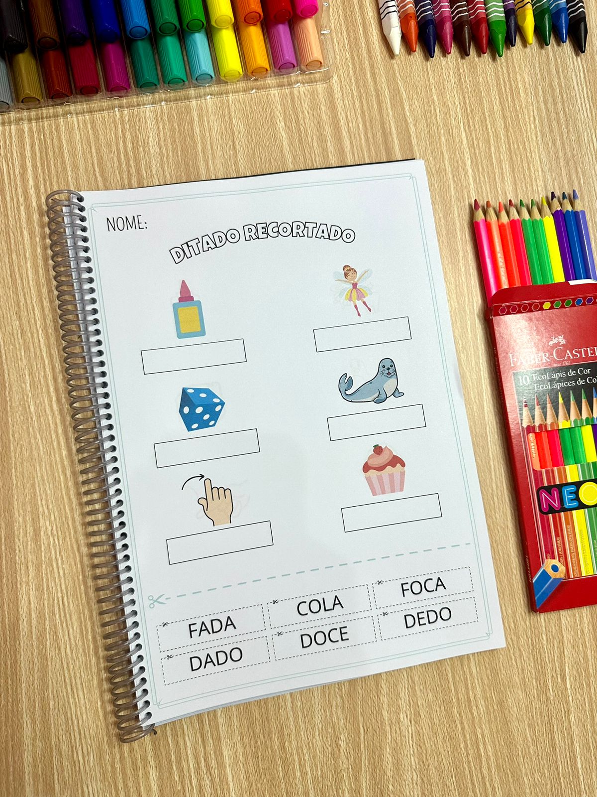 Apostila com 38 páginas de atividades, incluindo a opção de figuras coloridas e para colorir.