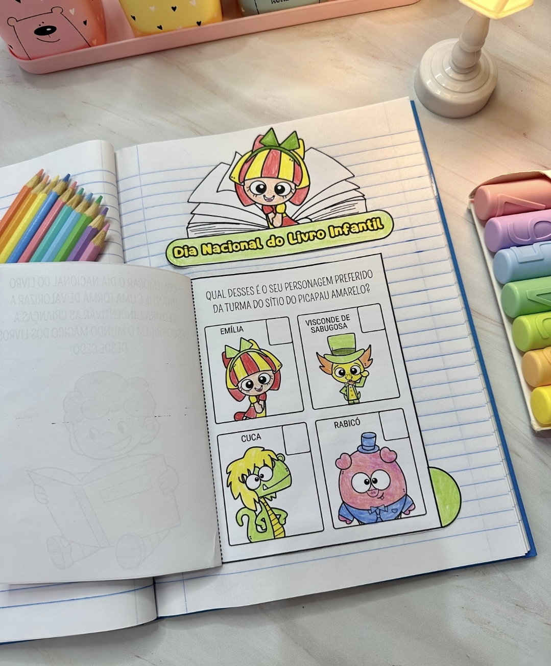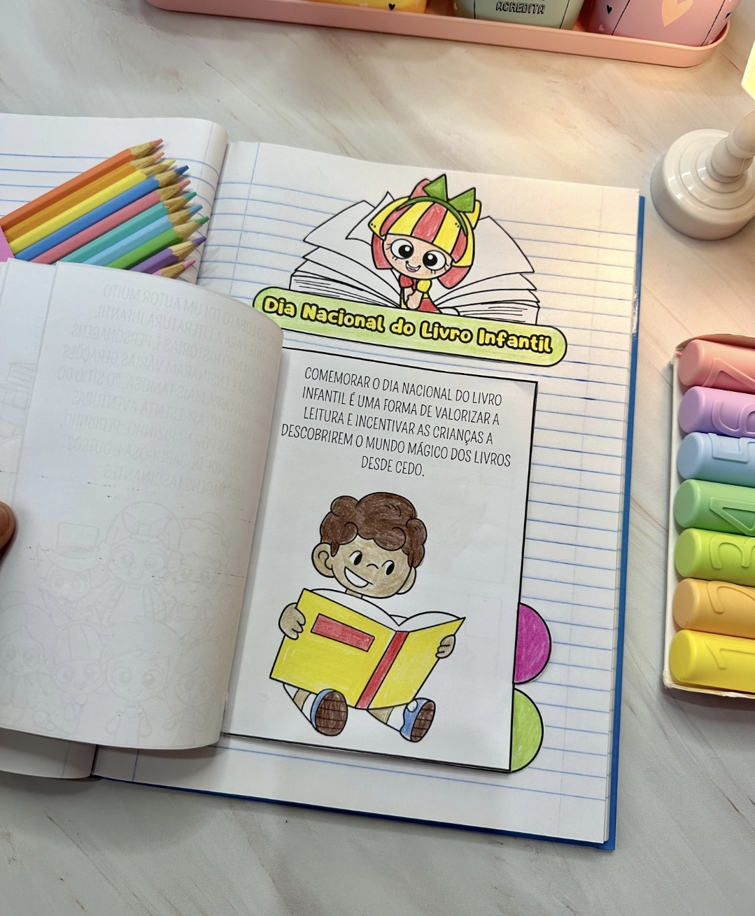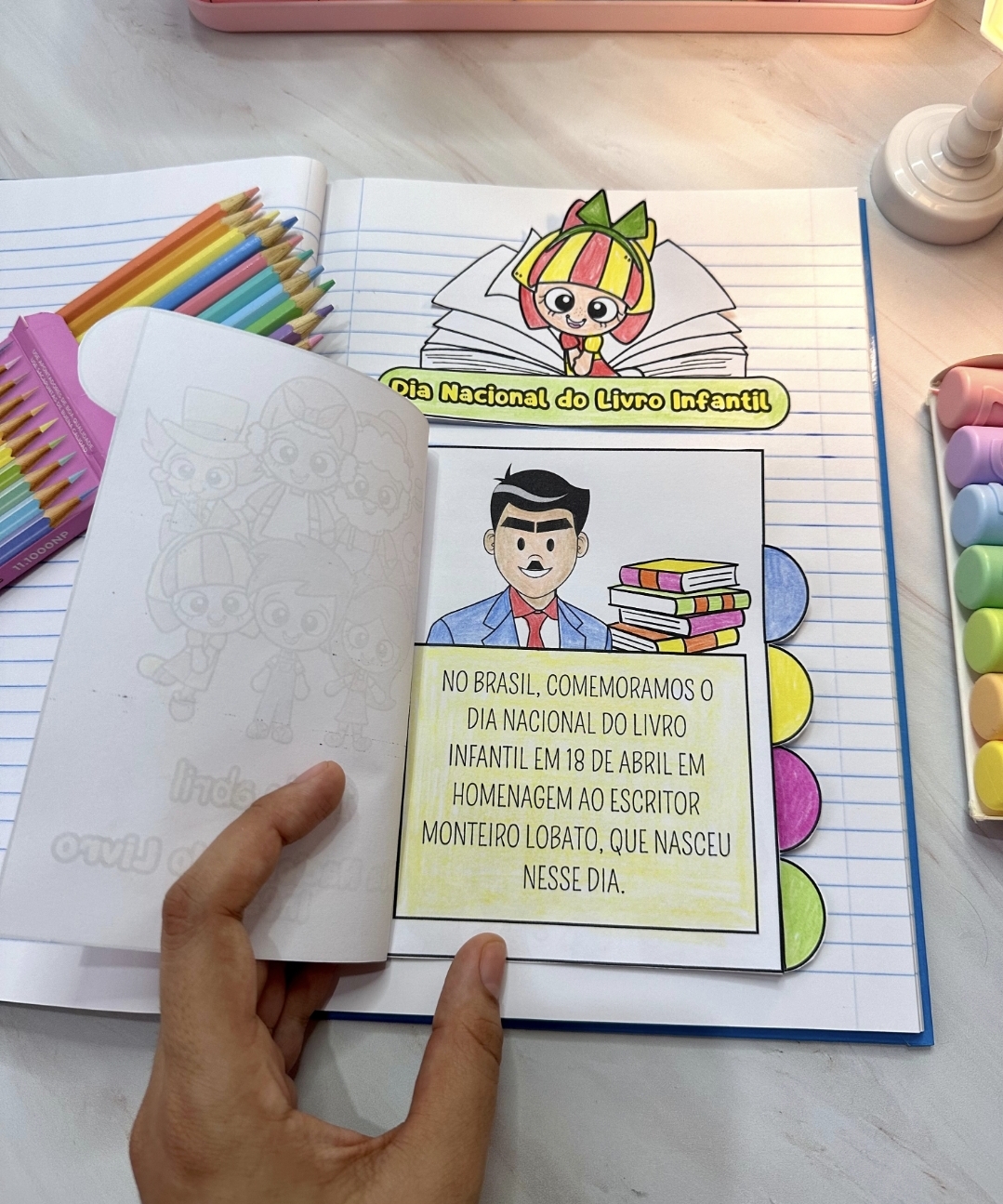 Descrição: Livrinho interativo Dia Nacional do Livro Infantil.